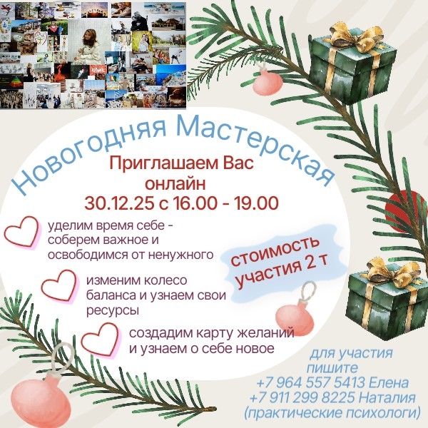 Приглашаем Вас онлайн на "Новогоднюю мастерскую", где мы в теплой и уютной обстановке: